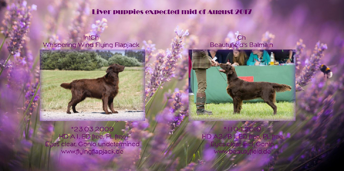 Wir freuen uns, dass Ralf und Conny Jack als Partner für ihre Hündin Svea ausgesucht haben. Jack hat Svea am 12. und 13.06. gedeckt. Der Ultraschall vom 11.07. bestätigte Sveas Trächtigkeit. Am 13.08. wurden die Welpen geboren. Es sind 7 Rüden und 3 Hündinnen, alle liver! Nähere Infos findet ihr auch auf www.beautyfield.de